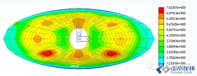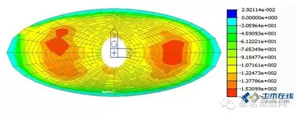 3. 但由于长轴与短轴的长度之比达到3.1,无论是主体钢结构还是基础,在长轴区域的环向构件由于曲率半径过大,均不能产生环箍约束效应,也就是径向水平推力无法得到有效约束。