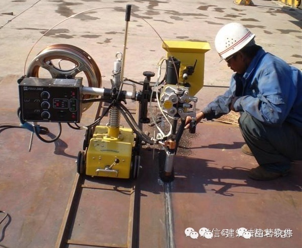 埋弧自动焊比手工电弧焊生产效率高5~10倍,且焊接速度快、焊缝质量好且稳定,在钢结构焊接中得到了广泛的应用。但因埋弧自动焊仅能在平焊位置和坡度不大的条件下焊接,且不适合薄板的焊接,它的使用范围受到一定的限制。常用于工厂制作厚板焊接。