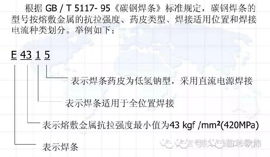 常用的Q235钢手工焊选用E43系列焊条,Q345钢手工焊选用E50系列焊条,对于Q235+Q345手工焊采用E43型焊条。焊条说明如下: