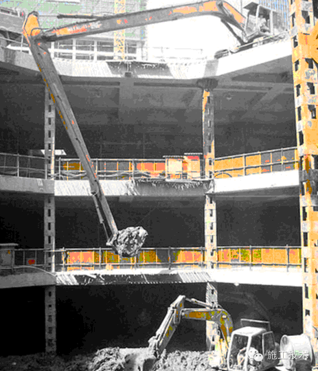 1、水平结构构件与基坑支撑相结合,俗称“以板代撑”;
