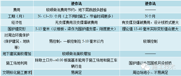 逆作法是一种利用主体地下结构的全部或部分作为支护结构,按地下结构自上而下并与基坑开挖交替施工的施工工法,是一种与顺作法顺序截然相反的施工技术。当围护结构及工程桩完成以后,并不是进行大开挖,而是直接施工地下结构的顶板或者开挖一定深度再进行地下结构的顶板、中间柱的施工,然后再依次逐层向下进行地面以下各层的挖土,并交错进行各层楼板的施工,每次均完成本层楼板施工后才进行下层土方的开挖。上部结构的施工可以在地下结构完工后进行,也可以在下部结构施工的同时从地面向上进行,上部结构施工的时间和规模可以通过整体结构的施工工况计算(特别是计算地下结构以及基础受力)来确定。