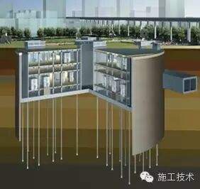 3、地下室外墙与围护墙体相结合,俗称“两墙合一”。逆作法的基本施工方法是在完成桩墙工程后,进行地面层结构施工,再同步往上往下进行上部结构与地下结构施工。