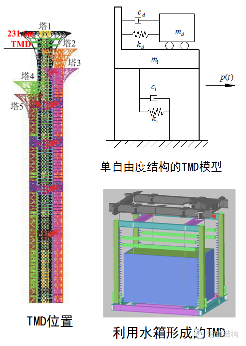 为了减小顶部观光厅风振加速度的影响,在主塔上部结合水箱设置了TMD装置,并采用折返吊挂方式解决水箱间空间高度不足、质量块自振周期较短的问题。实测结果表明,利用水箱制作的TMD对于减小风振加速度具有明显效果。