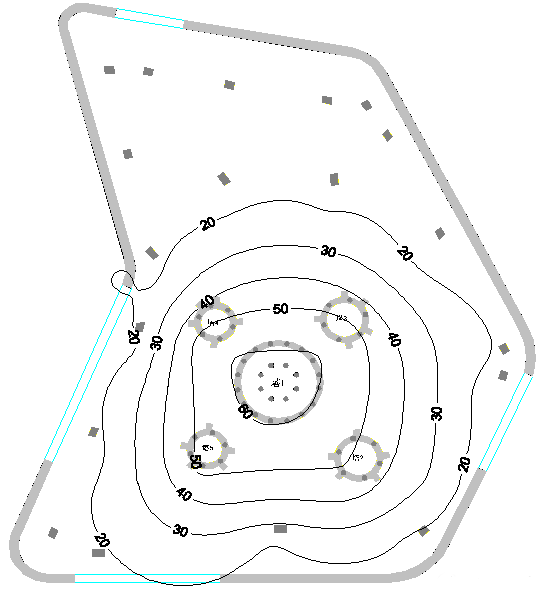 组合塔基础沉降分布图(图中等值线单位为mm)