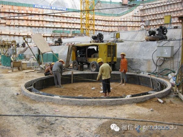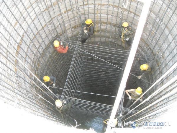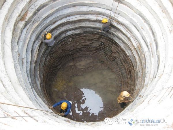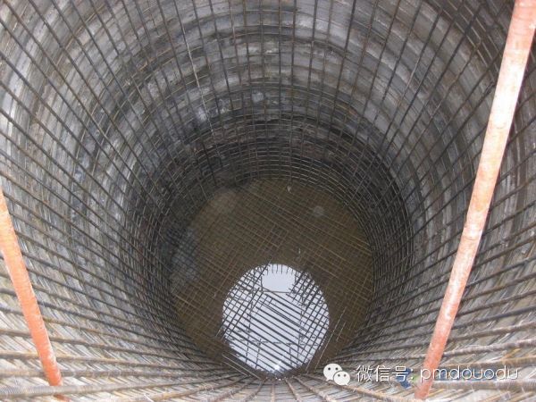 灌注桩采用钢筋混凝土护壁,护壁强度C25(掺早强剂)双层配筋,护壁是双层双向14钢筋,护壁厚度最厚处为500,桩芯混凝土强度C50