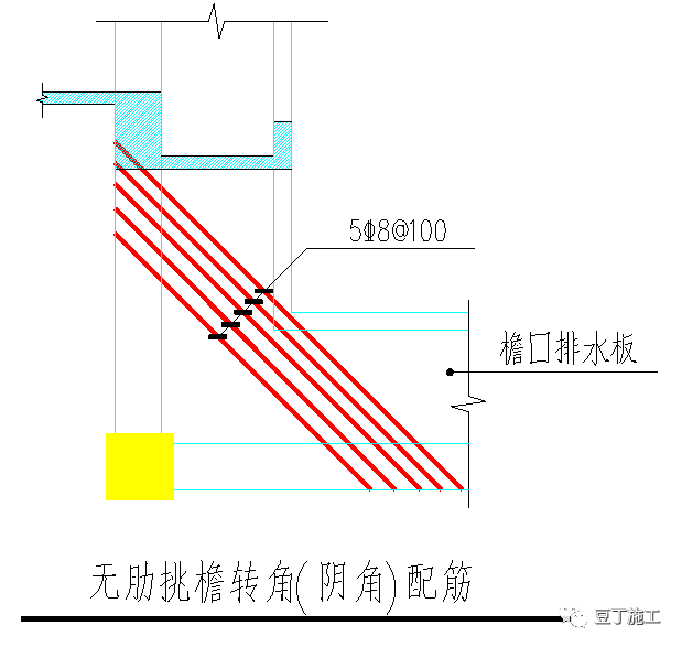 6、外墙转角处板上部附加钢筋、内墙阳角处板上部附加钢筋、悬挑板阳角附加钢筋配置分别详见附图六(1)、(2)、(3):