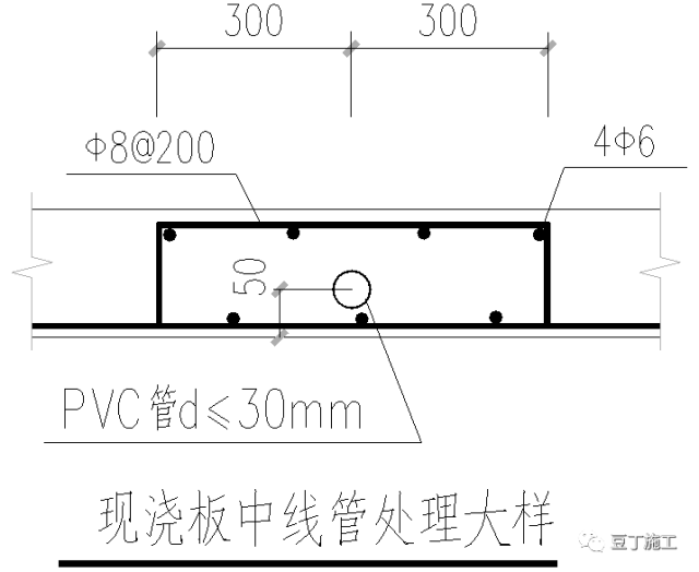 9)现浇板中管线处理大样(管线布置祥电施图):