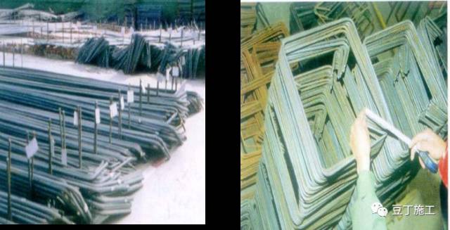 3、半成品钢筋设置标牌,要说明钢筋种类、使用部位、加工简图、数量等。吊装过程中钢筋上挂标识布条,保证施工人员能顺利辩别。