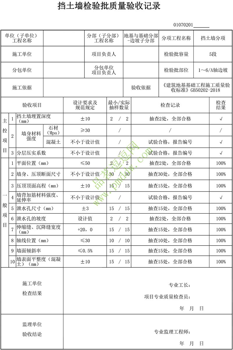 10.1.1 锚杆(索)、挡土墙等可根据与施工方式相一致且便于控制施工质量的原则,按支护类型、施工缝或施工段划分若干检验批。