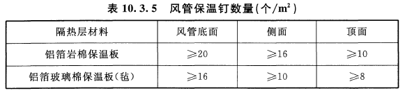 10.3.5 风管绝热材料采用保温钉固定时,应符合下列规定: