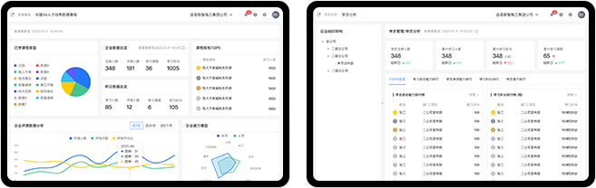 企业可通过管理平台了解员工评测、学习、考试等汇总数据,形成企业专属人才培养数据看板。也可以通过管理平台发布考试任务,实时监测员工学习成果。从而科学地实现整个组织能力地提升,推动数字化人才培养的转型与创新。